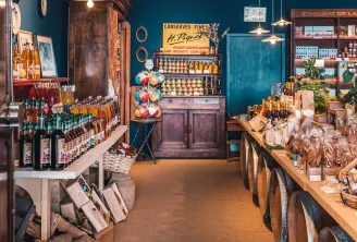 Dieses Feinkostgeschäft wählt Produkte aus, die in der Gironde geboren wurden und erzählt Ihnen ihre Geschichte... Gourmet! Sirupe und Säfte, Liköre, Konserven, Tees, Canelés, nach Wein duftende Salze... Es ist schwer, all diesen verlockenden Vorschlägen zu widerstehen!