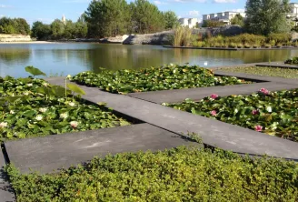 Die frei zugänglichen Gärten, begrünte Flächen, die eine Verbindung zwischen La Cité du Vin, der Garonne und dem wilden Ursprung der Weinreben schaffen