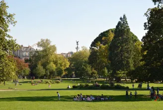 Wenige Schritte entfernt ließ der Intendant Tourny einen angenehmen Bereich für Treffen und Geschäfte anlegen: den Öffentlichen Garten. Es sei eine Art "Abendmarkt", sagte er, ohne zu wissen, dass unter seinen Bäumen weniger geschäftliche Gespräche stattfinden würden, da hier die ersten revolutionären Reden stattfanden.